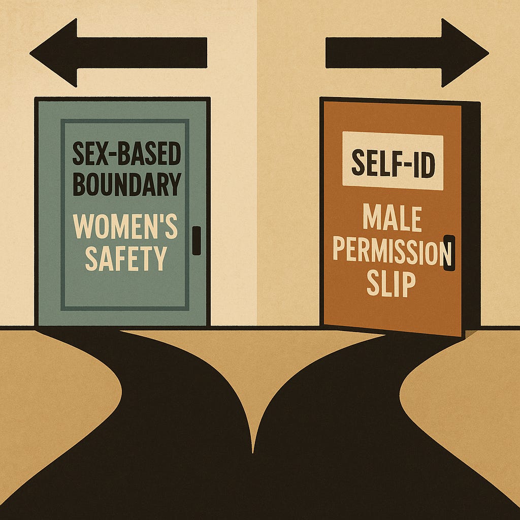 We’re told it’s only a tiny minority and we should be charitable. But safety systems are never built around the majority who behave well. We lock our doors at night not because most people are burglars, but because a few of them are — and because we can’t tell which ones by looking, nor can we always be on the lookout. Sex-segregated spaces function the same way. Not perfectly, but practically. They reduce harm because they are one-size-fits-all. But a rule that allows any male to declare himself the exception protects no one.